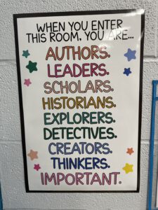 また、アメリカの小学校には、日本の学校にはないsigns が色んな所に貼られていたのにも驚きました。